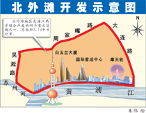 位于黃浦江邊,蘇州河以北的北外灘地區(qū),被列為上海黃浦江新一輪綜合開發(fā)的四個重點區(qū)域之一,規(guī)劃占地面積三平方公里多,將按照航運貿易區(qū)、現(xiàn)代商務區(qū)、濱江休閑區(qū)等功能地塊進行開發(fā)建設。有關人士認為,開發(fā)建設成熟后的這一塊新熱土,將與上海的老外灘區(qū)和浦東陸家嘴金融貿易區(qū)形成“鼎足之勢”,共同構筑上海最為繁華絢麗的一片城市景觀。