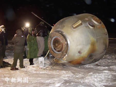 2003年1月5日,返回艙在太空中運行六天零十八小時、繞地球108圈后,在內(nèi)蒙古中部預(yù)定區(qū)域準(zhǔn)確著陸。孫陽 攝