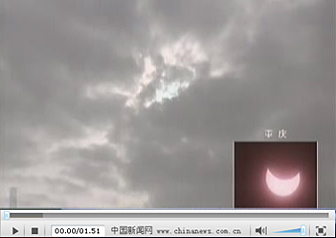 中新網7月22日電 7月22日,500年一遇的日全食奇觀引發(fā)了網絡上的一次盛大“天文聯(lián)歡”。來自全國各地的網友自發(fā)組成了“直播團隊”,以網絡為平臺發(fā)布圖文,記錄自己觀測此次天文奇觀的情況?上旃蛔髅,多個省市天陰云厚,觀測活動受到了嚴重影響。一位江蘇網友就笑稱:“看來咱們得爭取再活500年,到時候再觀測吧!” - 中新網記者重慶報道:2009-7-22 09:32
