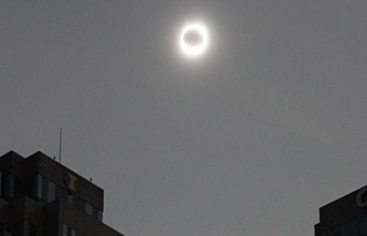 二十二日晨八時零七分五十四秒,中國西南的重慶迎來幾百年一遇的日全食奇景。 最早看到日全食初虧的是渝西的榮昌縣,約四十秒后,重慶主城的居民也目睹了這一天文奇景。