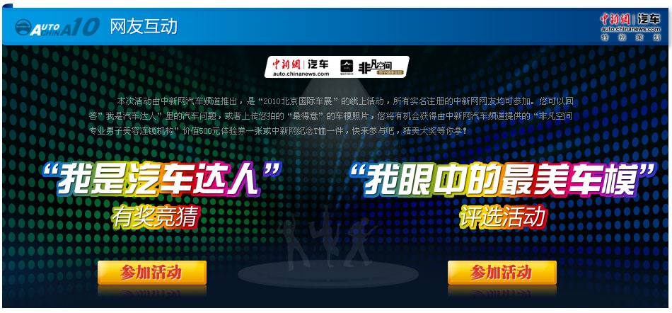 以“暢想綠色未來”為主題的2010北京國際車展開幕,本屆北京車展規(guī)模為歷屆之最,同時全球首發(fā)車、概念車數(shù)量之多將創(chuàng)下國內車展新紀錄。中新網汽車頻道將圍繞車展,第三只眼看車展,從價格發(fā)掘的角度,解讀中國車市,發(fā)掘繁華背后的車市興衰關鍵點。