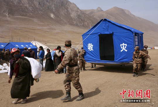 圖:青海玉樹120戶災(zāi)民搬進(jìn)帳篷