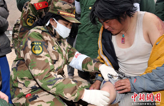圖:玉樹地震傷員在甘肅省城醫(yī)院接受治療