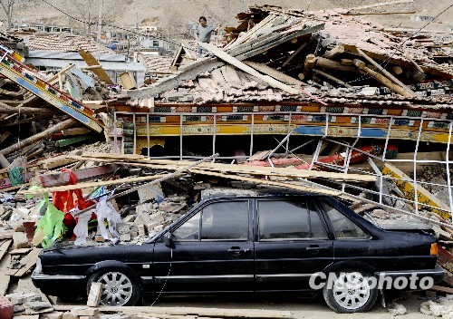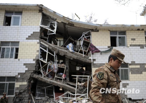 圖:坍塌的玉樹民族師范學(xué)校女生宿舍
