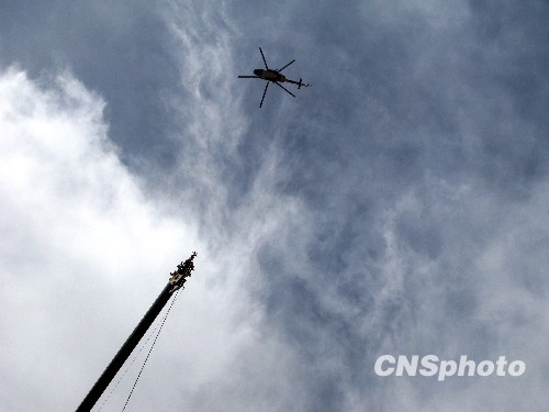 圖:直升機(jī)在玉樹地震災(zāi)區(qū)上升勘查災(zāi)情