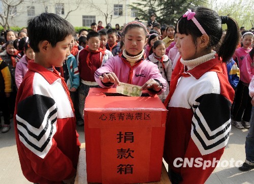 圖:棗莊小學(xué)生向青海玉樹地震災(zāi)區(qū)捐款