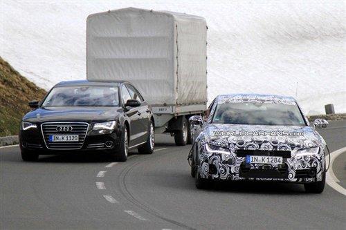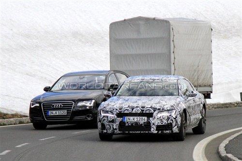 近日奧迪A7和新一代A8同時(shí)出現(xiàn)在奧地利的高速公路上,雖說(shuō)A7的測(cè)試已經(jīng)進(jìn)入尾聲并且即將發(fā)布,但是嚴(yán)謹(jǐn)?shù)牡聡?guó)人依舊將這臺(tái)全新四門Coupe包裹的嚴(yán)嚴(yán)實(shí)實(shí)的,不過(guò)就算是這樣,路試車輛還是留下了一些蛛絲馬跡。