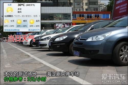 測試之前我們包下了公司附近海淀劇院的二十個停車位,為我們的測試場地提供了便利的條件,而且這個區(qū)域陽光沒有任何遮擋,可以肆無忌憚地照射在測試車型上。