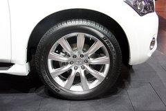 來到車身側面我們更加會覺得QX56的龐大,整體造型圓潤,沒有多余的線條作為修飾,但是反而會讓人感到車身很厚實。無鑰匙進入也毫無懸念的裝配在了QX56身上,兩側翼子板上的散熱孔并非形同虛設,而是告訴我們它裝載了一臺V8 5.6升汽油發(fā)動機。其次英菲尼迪慣用的大尺寸輪轂同樣被裝到了這款新車上,22寸9幅造型的鋁合金輪轂使我不得不說很有氣勢,與之搭配的是普利司通275\50 R22輪胎,抓地力應該相當不錯。