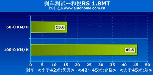 和悅RS全系車型只有一種動力組合,來自東安動力的4G93 1.8L發(fā)動機搭配5檔手動變速箱,這樣的組合技術上并不先進,但是實際測試時0-100km/h 11.8秒的加速成績還是比較令人滿意的。而配有四輪盤剎的剎車系統(tǒng)卻表現(xiàn)不佳,100-0km/h的平均剎車距離僅為45.5米,這樣的成績肯定不能令人滿意。