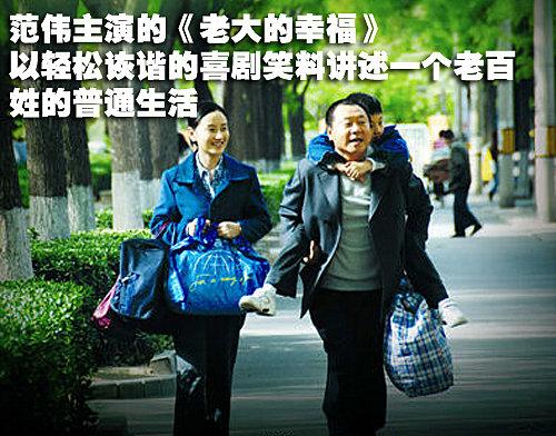 范偉主演的《老大的幸!分荚谔接懏斚氯说男腋S^,讓觀眾在亦莊亦諧的家庭情感故事中審視現(xiàn)實社會的奇怪現(xiàn)狀,反思急功近利的浮躁心態(tài),用一個小人物的“無為之事”和“不言之教”詮釋最樸實、最純粹的幸福觀,是一部相當不錯的喜劇電視連續(xù)劇。另外孫寧、孟廣美的加盟,也為本片增色不少。