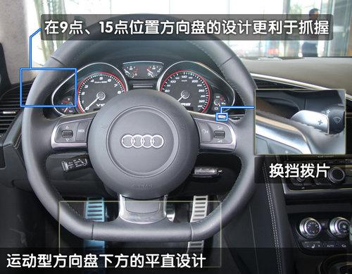 通過駕駛室內(nèi)的轉(zhuǎn)速表可以看出,這臺發(fā)動機的轉(zhuǎn)速范圍可以達到最高9000轉(zhuǎn),而“紅色區(qū)域”從8000轉(zhuǎn)才剛剛開始。也就是說有它別于一般的車輛,為了得到最佳的功率和扭矩輸出,讓R8的發(fā)動機保持在5-8千轉(zhuǎn)進行工作是相對合理的。這時,每一個聽到R8呼嘯的人也許都會說:“喔,我想那輛車一定非常棒!”奧迪R8提供了三幅真皮包裹的運動型方向盤,在10點和2點位置都有凸起從而方便駕駛員的抓握。多功能方向盤后方的換檔撥片可以在手動模式下實現(xiàn)類似F1賽車式的換檔方式。