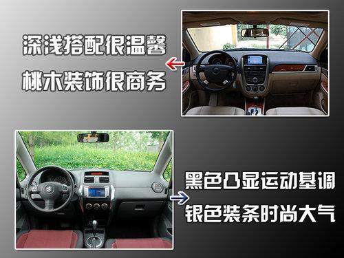 內(nèi)飾部分,新凱越依舊是純正美國風(fēng)格,上深下潛的顯色基調(diào)更有很溫馨,木質(zhì)狀體條則是點綴出了一點兒商務(wù)范兒;天語SX4兩廂內(nèi)飾采用黑色作為基礎(chǔ),運(yùn)動的感覺尤為突出,銀色裝飾條的應(yīng)用突出的時代氣息。