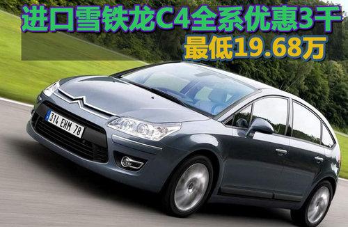 在標(biāo)致-雪鐵龍集團(tuán)的2號(hào)平臺(tái)上,誕生了psa 最具代表性的兩大轎車(chē)系列。一個(gè)是國(guó)人比較熟悉的標(biāo)致品牌的307,另一個(gè)則是雪鐵龍品牌的C4 Coupe。C4是一款個(gè)性十足、科技領(lǐng)先的MPV,它搭載了雪鐵龍最新的技術(shù),將中央集控式方向盤(pán)、全新CVVT可變氣門(mén)發(fā)動(dòng)機(jī)引入其中,是一款與眾不同且新意十足的轎車(chē)。 根據(jù)網(wǎng)上車(chē)市價(jià)格監(jiān)測(cè)系統(tǒng)顯示,進(jìn)口雪鐵龍C4全系優(yōu)惠3千,有現(xiàn)車(chē)。詳情如下表: