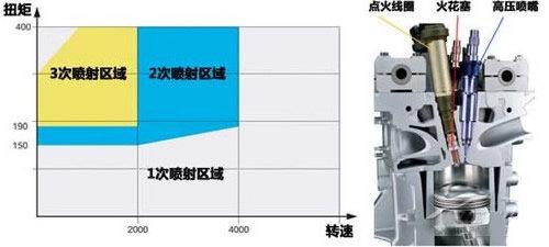 不同負(fù)載,不同轉(zhuǎn)速區(qū)域的燃油噴射次數(shù)不同