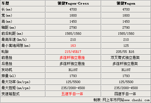 新駿捷WagonCross與駿捷Wagon的車身尺寸基本沒有變化,長寬高分別是4700/1800/1450毫米,軸距和前后輪距也沒有變化。但新駿捷WagonCross加大了離地間隙,達(dá)到了163毫米。另外,新駿捷WagonCross配備的是17英寸輪胎,而駿捷Wagon則配備16英寸輪胎。新駿捷WagonCross采用前后多連桿式設(shè)計,駿捷Wagon則采用雙叉臂式獨立懸架。在動力方面,這兩款車并沒有太大差別,只不過新駿捷WagonCross采用五速手自一體變速器,比老款駿捷Wagon有很大提高。
