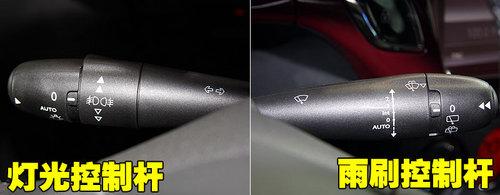 轉(zhuǎn)向燈、大燈和遠(yuǎn)近光的切換都要通過(guò)方向盤(pán)左側(cè)的撥桿,霧燈和儀表盤(pán)燈光的調(diào)節(jié)則是在駕駛員左側(cè)的儀表臺(tái)上;方向盤(pán)右側(cè)的撥桿還是最常用的前、后窗雨刷開(kāi)關(guān)。