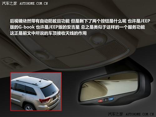 車內(nèi)反光鏡上有三個(gè)按鈕,中間的為自動(dòng)防眩目的開關(guān),那另外兩個(gè)是什么呢,或許是JEEP的“G-book”,或許是JEEP的“安吉星”,總之我們猜測(cè)就是類似于這兩個(gè)系統(tǒng)的一種服務(wù)功能,而上文提到的車頂天線應(yīng)該就是該系統(tǒng)的接收模塊吧。