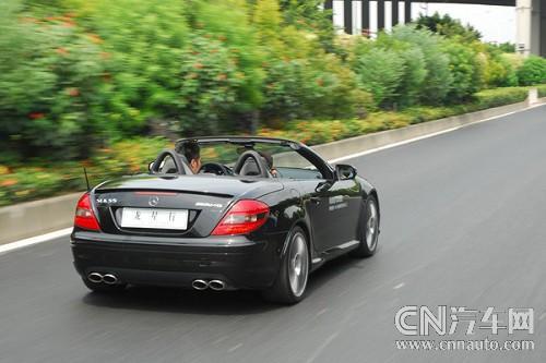 輕量化后的小巧的車身更加靈動,踏下油門踏板動力噴涌而出,將SLK55行駛到100km/s僅僅需要短短的4.9秒。在路上我們可以體驗迅速超車的樂趣,雖然沒有在山路上劈彎的感覺好,但是在馬路上左穿右插穿越所有車輛,可以充分體驗到SLK55AMG的動力以及駕控感受。SLK200的5檔變速箱那種后段力量略顯不足和變速器的反應慢的缺點,換上了7速變速箱后,感覺與這臺V8發(fā)動機更為匹配,后端加速同樣凌厲。