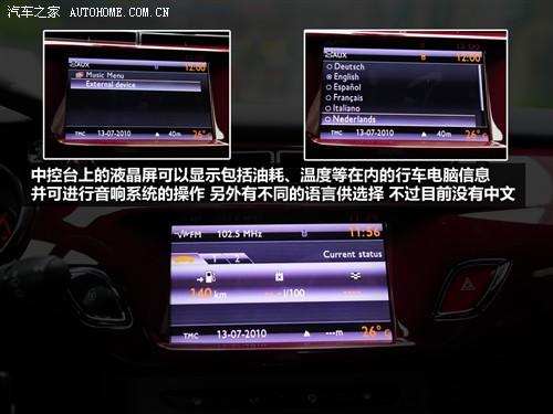 中控液晶屏可以顯示油耗和溫度等行車電腦信息,可對(duì)音響、藍(lán)牙系統(tǒng)進(jìn)行操作,另外提供了不同種語言供用戶選擇,可惜的是目前沒有中文;圖片中沒有看到出GPS導(dǎo)航,不過官方數(shù)據(jù)顯示DS3高配車型帶有GPS。