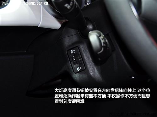 DS3帶有大燈高度調(diào)節(jié),位置在方向盤后的轉(zhuǎn)向柱側(cè)面,我們認(rèn)為不僅操作起來有些不方便,而且想看到刻度有些困難。