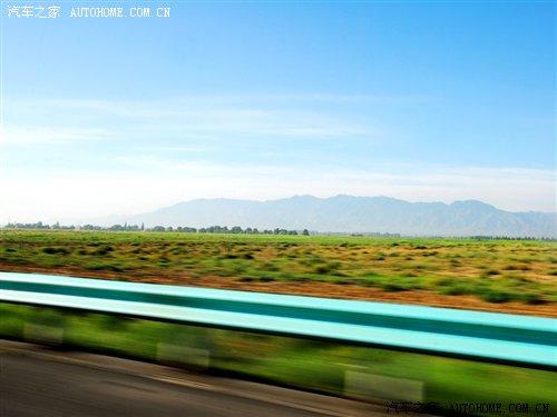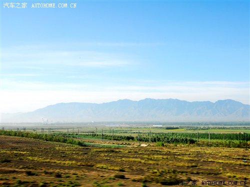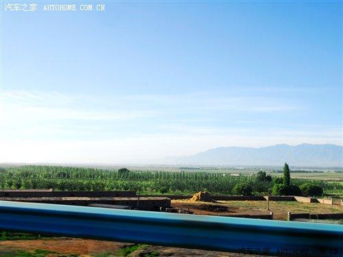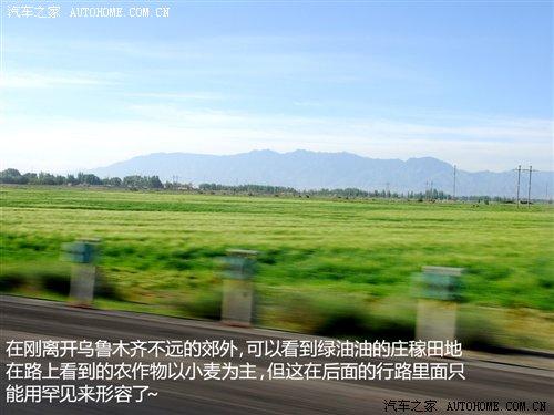 離開高區(qū)駛?cè)雵溃嚧巴獬霈F(xiàn)了不同尋常的景色。景物也隨著我們的前進(jìn)在不斷地變化。在剛離開烏魯木齊不遠(yuǎn)的郊外,可以看到綠油油的莊稼田地,一片片的小麥田地讓人目不睱接。