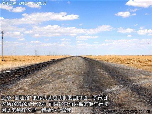 過(guò)了廣告牌以后,我們行駛的道路也發(fā)生了改變,省道已經(jīng)到了盡頭,我們駛進(jìn)了俗稱(chēng)叫“翻江路”的柏油路面上。據(jù)當(dāng)?shù)氐能?chē)主說(shuō),由于羅布泊是一個(gè)人煙稀少的地方,平時(shí)進(jìn)出的都是一些好幾十噸的運(yùn)鹽貨車(chē),因此本來(lái)鋪好的柏油路已經(jīng)變得破爛不堪,故有“翻江路”之稱(chēng)。