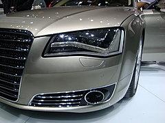 全新奧迪A8L W12 quattro在車身外觀上還有一系列的改進,包括單幅式水箱進氣格柵,其中間為鉻金屬噴涂的橫條裝飾。在其空氣通風口以及側(cè)后視鏡邊緣還擁有鉻金屬的嵌入物裝飾。其進氣格柵處及車尾還配有W12的標志,以顯示該車身份的不同。梯形的雙尾氣排放管與后保險杠完美的結(jié)合在一起。
