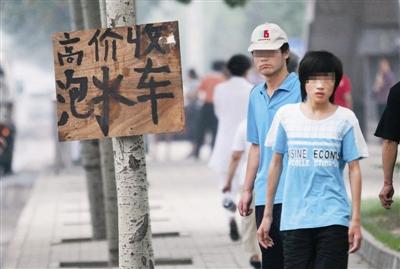 7月13日,在南四環(huán)花鄉(xiāng)橋北側(cè)路邊,一個(gè)印著“收購(gòu)泡水車”的牌子引起了記者的注意。守在旁邊的小販告訴記者,他們專門收泡水車,價(jià)格好商量。