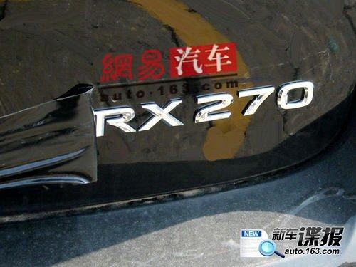 外觀上新車和RX350沒有差別。從命名來看,新車將搭配一臺排量更小的2.7L發(fā)動機(jī)。從RX系列與豐田漢蘭達(dá)出自同一平臺的情況來看,RX270所搭配機(jī)型應(yīng)該就是漢蘭達(dá)2.7L之上的IAR-FE直列四缸發(fā)動機(jī)。最大功率190馬力,最大扭矩達(dá)到252Nm。