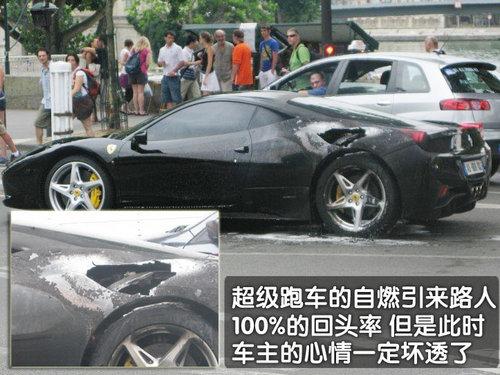 不過近日一則來自法國的消息不僅僅意味著一臺名貴的法拉利已經(jīng)報廢,同時也讓我們再次將目光投向了超級跑車的頻繁自燃。這一次事故發(fā)生在法國巴黎,這位身著紅色衣服的車主看上去絕對是一個超級的法拉利車迷(從他紅色的衣服就能看出來)。據(jù)他介紹他的這臺嶄新的458才僅僅買了幾天就這樣被燒毀了。