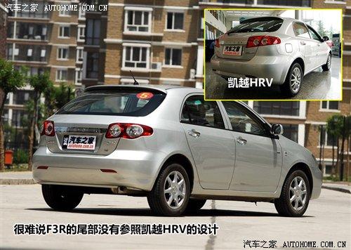 比亞迪F3的前臉與花冠也十分相似,大燈的形狀做了些小小的修改,尾燈則與上一代本田飛度三廂版的十分相像,個(gè)人覺(jué)得這款尾燈似乎與整體的平和中庸風(fēng)格并不太搭調(diào),只是看的時(shí)間長(zhǎng)了已經(jīng)習(xí)慣了。除此之外,F(xiàn)3的兩廂車型F3R的尾部造型也與上海通用別克已經(jīng)停產(chǎn)的凱越HRV具有九成的相似。