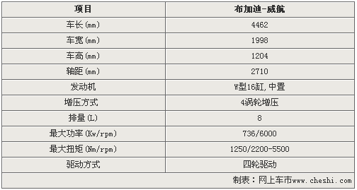 布加迪威龍(VEYRON)這個(gè)名字源自曾經(jīng)駕駛布加迪57贏得1939利曼桂冠的Pierre Veyron。而16.4代表16個(gè)氣缸和4個(gè)渦輪增壓器。 這款車(chē)配備了大眾專門(mén)研發(fā)的W型16缸發(fā)動(dòng)機(jī),可以說(shuō)是將兩臺(tái)V8發(fā)動(dòng)機(jī)公用一根曲軸的產(chǎn)物。此外,該發(fā)動(dòng)機(jī)還配備了4個(gè)渦輪增壓器。排量達(dá)到了7993cc。可以迸發(fā)出736千瓦的最大功率,同時(shí)在極低的1000rpm時(shí)即可輸出730牛米的龐大扭矩,在2200rpm時(shí)就可以迸發(fā)出1250牛米的峰值扭矩,這種扭力會(huì)一直持續(xù)到5500rpm。