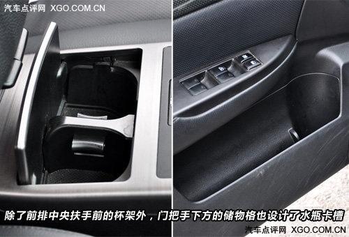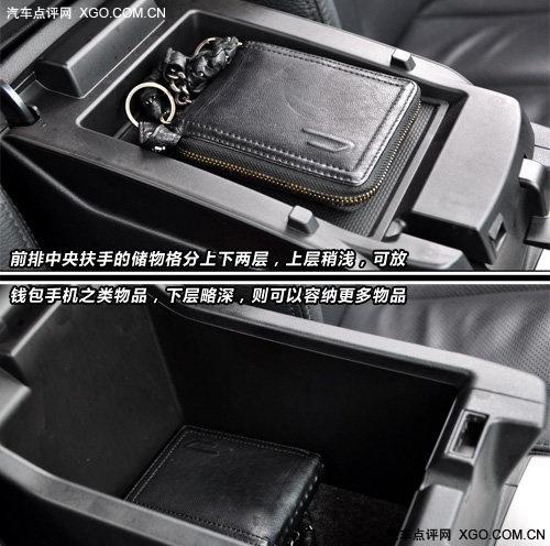 前排空間中,除了當(dāng)把后面的兩個(gè)杯架以外,門把手下方的儲物格也特別設(shè)計(jì)了放置水瓶的卡槽,可以將水瓶穩(wěn)固的放置其中,中央扶手的儲物格分上下兩層,上層稍淺,可放小物件,下層略深則可以容納更多的物品。