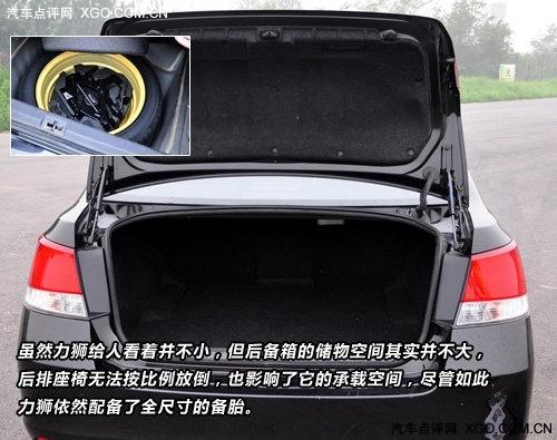 車內(nèi)有有一處超大的眼鏡存放處,這么大的眼鏡盒還是真的很少見,不僅能放下普通眼鏡,按尺寸看,連雷鵬的大墨鏡放在里面也應(yīng)該沒有什么問題,內(nèi)置絨布,以防止鏡面與內(nèi)壁的摩擦。雖然眼鏡盒超大,可該大的地方卻并不如人所愿,在外觀上和內(nèi)飾上,力獅看著都不小,但偏偏后備箱的儲物空間卻不大,后排座椅也無法按比例放倒,同樣影響了承載空間。盡管后備廂空間不是那么的大,但力獅依然配備了全尺寸的備胎,如果換成非全尺寸的話,空間應(yīng)該也會(huì)得到些許的提升吧。