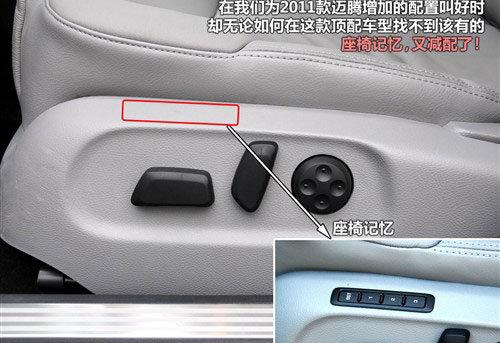不過必須批評的是邁騰一方面在積極的增配,改善用戶體驗,另一方面還不忘簡配,之前出現(xiàn)在舒適型和豪華型上的座椅記憶功能在2011款全系中都被簡配掉了。