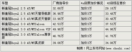在豪華私家車市場,針對中國消費者偏好“大車”的需求,各大主力車型進(jìn)行了加長設(shè)計,一汽豐田旗下旗艦車型-------日系的皇冠家族也不例外,加長新皇分別搭載了2.5L、3.0L和4.3L引擎,共計9款車型,售價32.68萬-89.95萬元。整體性能、科技含量及豪華感大幅提升。根據(jù)網(wǎng)上車市價格監(jiān)測系統(tǒng)顯示:今日新皇冠再次出現(xiàn)了較高的價格浮動,購買3.0L全系可享受到50000元的優(yōu)惠現(xiàn)金。具體車型行情如下: