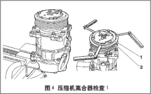 當車外溫度傳改期顯示溫度低于設(shè)定值時,ECU使壓縮機離合器不起作用;同樣,當傳感器顯示節(jié)氣門全開或發(fā)動機處于高速運轉(zhuǎn)時,ECU使壓縮機離合器不起作用。