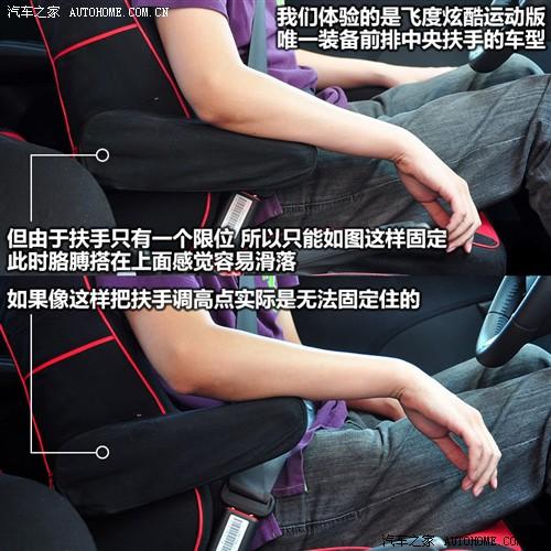 另外兩項(xiàng)比較明顯的配置是自動(dòng)空調(diào)和前排中央扶手。前者肯定可以為乘客提供一定的便利性,但是相信很多車主也和我一樣反感自動(dòng)空調(diào)經(jīng)常自作主張的將風(fēng)量調(diào)到最大的行為,而一些用戶選擇自動(dòng)空調(diào)的原因也僅僅它看上去要高檔一些。而中央扶手的實(shí)用性更低,飛度炫酷版的中央扶手較窄而且高度不可調(diào),可提供的舒適性比較有限。