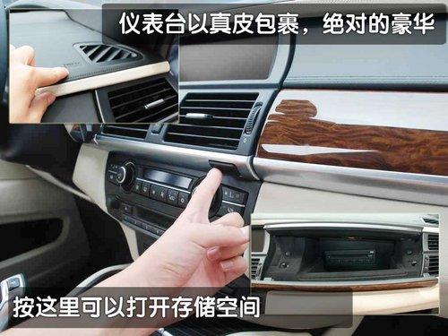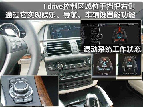 在內(nèi)飾部分寶馬X6混合動(dòng)力版車型也有著細(xì)微的不同,儀表臺(tái)的整體感覺與寶馬家族的其它車型造型統(tǒng)一,略向駕駛員一側(cè)偏轉(zhuǎn)的儀表臺(tái)照顧到了駕駛員在駕車當(dāng)中的操作便捷性。儀表臺(tái)整體材料為真皮材質(zhì),而鋁金屬裝飾條顯得更加動(dòng)感十足,但第一感覺始終讓人誤以為是寶馬X5的內(nèi)飾。