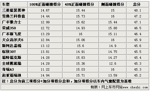 通過以上表格,我們可以看出這樣一個現(xiàn)象,12款車當(dāng)中涉及自主品牌、日韓系列和德美系列各國車型。很多人一直堅信德美系的車要比其他兩類車要結(jié)實,但事實證明他們的成績也并非那么無懈可擊?磥鞢-NCAP的鐵證也可以做一回流言終結(jié)者了,不過這12款車全部達(dá)到了45分以上,也就是C=NCAP五星級安全標(biāo)準(zhǔn)。至于傳說中的五星半級別,在比較常見的國產(chǎn)車中只有雅閣和CR-V達(dá)到。