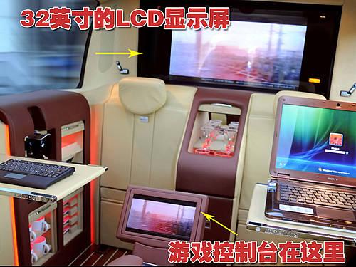 32英寸的LCD顯示屏放置在前排座椅后的隔斷墻上,其可以作為索尼Vaio筆記本電腦系統(tǒng)的顯示器,并且該車(chē)的車(chē)廂內(nèi)部還有無(wú)線(xiàn)網(wǎng)絡(luò)又來(lái)連接另外的筆記本電腦。所安裝的索尼Playstation 3游戲控制臺(tái)可以播放電影以及賽車(chē)模擬游戲。此外其較大的顯示屏還可以同時(shí)全方位的展示車(chē)輛周?chē)臓顩r。