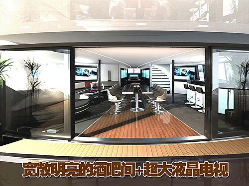 從官方設(shè)計(jì)圖上我們可以看到起奢華的內(nèi)部裝飾,液晶顯示屏的操控界面,寬大舒適的駕駛艙座椅,在其船艙還配置了寬敞的酒吧間,木質(zhì)的地板以及灰色的裝飾增添了雅致的風(fēng)格。此外還有舒適的長沙發(fā)以及小型會議桌等等。