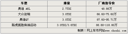 汽油對于社會的各個階層都是好東西,它既可以制作塑料制品,還是擁有汽車的家庭每天不可缺少的東西,并對其產(chǎn)生了過度依賴。但是大家可能都忘記的一樣可以替代它產(chǎn)品——柴油。隨著汽車技術(shù)的不斷發(fā)展,柴油的諸多缺點(diǎn)都被一一克服,其實不論是從售價低廉的方面還是從用于強(qiáng)勁動力的角度來看,如今搭載柴油發(fā)動機(jī)的汽車都擁有著不小的優(yōu)勢。今天網(wǎng)上車市就為您帶來4款高端柴油車型推薦。