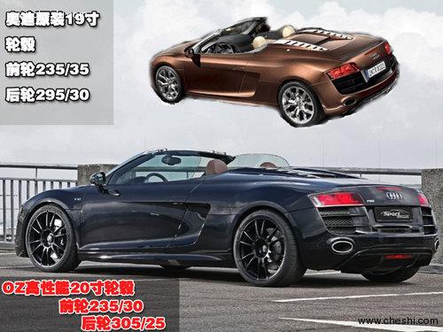 由Sport-Wheel出品的這款改裝版奧迪R8 Spyder在全車外形上并沒有做太大改動,主要著眼于動力的提升。不過為了配合超強的動力,他們選裝了傳奇品牌OZ制造的Ultraleggera HTL系列輪胎。這是一套20寸的運動輪轂,采用前輪235/30-20后輪305/25-20的配比,在安全性上較官方版更勝一籌,價值40000元。