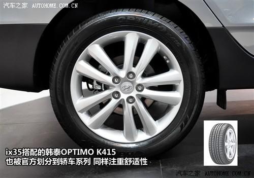 韓泰OPTIMO K415也被官方劃分得到轎車(chē)輪胎系列,看來(lái)現(xiàn)代ix35的確不適合在野地里行駛,從選用的輪胎上就能看出,該車(chē)更多突出的的是舒適性。采用米其林輪胎的車(chē)型暫時(shí)還沒(méi)有見(jiàn)到,不知道是采用的哪款型號(hào)。另外,ix35的備胎也為全尺寸鋁合金輪轂的,沒(méi)有縮水。