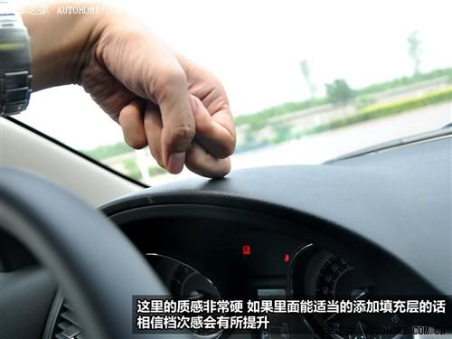 但我們并不太喜歡中控臺的覆蓋材質(zhì),尤其是中控臺頂部,由于缺少填充物這里完全是硬梆梆的。沒有親和力的手感讓人覺得不夠顯檔次。而金屬裝飾之下的部分雖然里面有填充層,但摸上去只比頂部略軟一點,依然談不上觸感細(xì)膩。