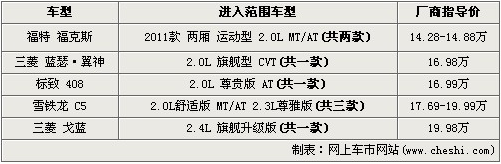 進(jìn)入范圍車(chē)型:2011款兩廂運(yùn)動(dòng)型2.0 MT/AT