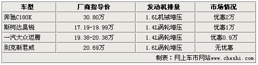 以上5款中級(jí)車當(dāng)中,斯柯達(dá)昊銳和邁騰均使用了大眾研發(fā)的1.4T發(fā)動(dòng)機(jī),新君威采用了1.6T發(fā)動(dòng)機(jī),最近上市的奔馳C180K則搭載了一臺(tái)1.6L機(jī)械增壓發(fā)動(dòng)機(jī)。增壓發(fā)動(dòng)機(jī)對(duì)于這4款既有面子又有里子的車來(lái)說(shuō),絕對(duì)夠用。動(dòng)力輸出也不會(huì)遜色于同車型的大排量版本。