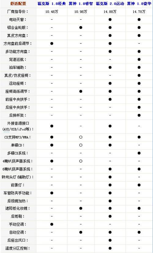 在入門(mén)車(chē)型的舒適性配置方面,兩車(chē)都表現(xiàn)的不盡如人意。福克斯經(jīng)典版的鋼輪轂讓人郁悶,座椅高低調(diào)節(jié)和遮陽(yáng)板化妝鏡也都是非常必要的配置。相比起來(lái)翼神的主要缺憾是沒(méi)有外接音源接口,這不得不說(shuō)是一個(gè)配置上的缺陷。